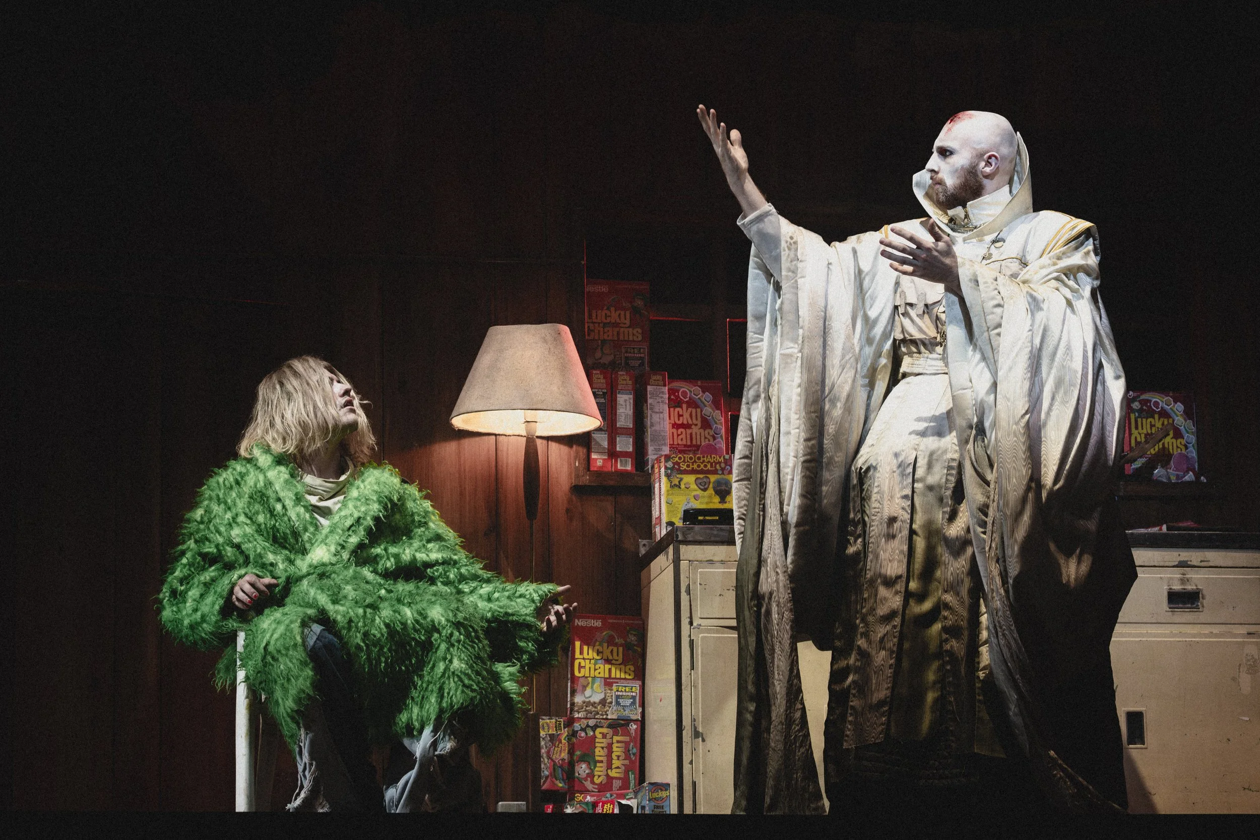 The following hour and a half contained an eclectic mix of arias with electric guitars, effervescent colouring, mormons, demons, ringing telephones, clanging bottles, and complete darkness. These elements reordered what was allowed to matter onstage. Sound effects carried as much emotional weight as melody, and silence was treated with the same seriousness as aria. By the end, I had tears streaming down my face. My friend and I left in silence, needing a few moments to process the insanity we had just seen. This was the surprisingly refreshing experience I had while attending Last Days, the Kurt Cobain inspired opera playing at the Royal Opera House, one that immediately raised questions about who opera is for, and its future possibilities.